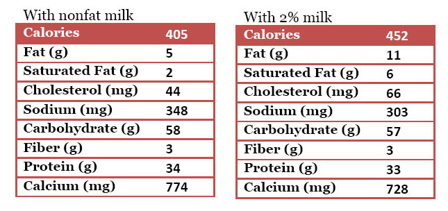 • 1  1/2 cups nonfat or 2% milk (or milk substitute of your choice)